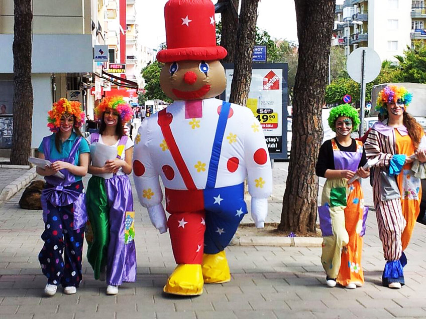 . Aşuk ile Maşuk . Ateş Yutan Adam . Baloncu Palyaço . Çizgi Film Karakterleri . Çocuk Animasyon Ekibi . Dans Grupları . Heykel ve Pandomim Ekipleri . Jonklör . Geleneksel Sokak Satıcıları . Karagöz - Hacivat Gölge ve Canlı Oyunu . Karikatürist . Keloğlan . Kostümlü Karakter Çizgi Film . Kukla ve Çocuk Tiyatrosu - Müzikli . Kukla Gösteri Ekibi . Maskot Bando Takımı . Niyetçi . Orta Oyunu - Müzikli . Palyaço . Pamuk Prenses ve 7 Cüceler . Pandomim . Patenci Palyaço . Sihirbaz . Sokak Bandosu . Spiderman, Superman, Batman vb. . Şişme Karakterler . Tahta Bacak . Tel Cambazı & Akrobat . Ülke, Ünlüler, Masal Kahramanları . Vantrolog . Yüz Boyamacı & Palyaço